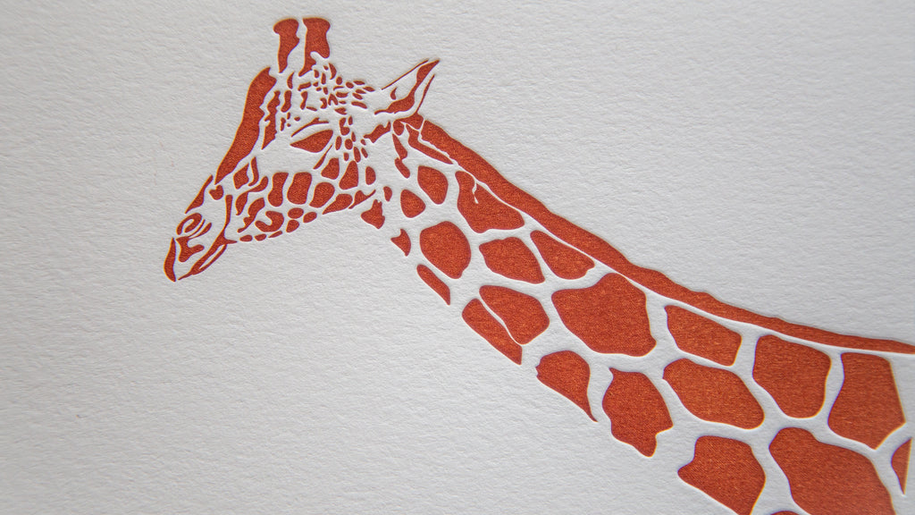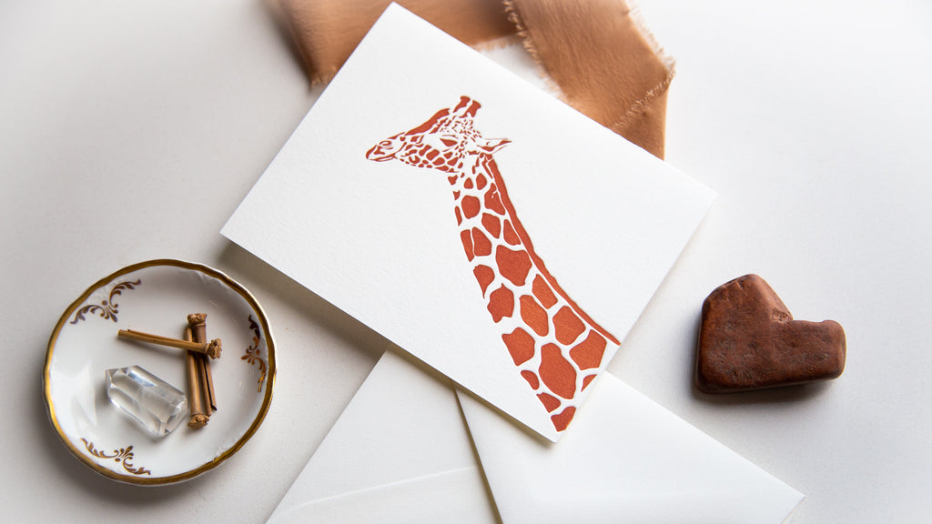 This card is hand illustrated and letterpress printed with lots of love on natural white cover stock. Inspired by the elegant giraffes we saw while traveling in South Africa. Blank inside + matching white envelope . Available as a single card or a box set of 6 folded notes. A2 (5.5x4.25) #africa #wild #safari