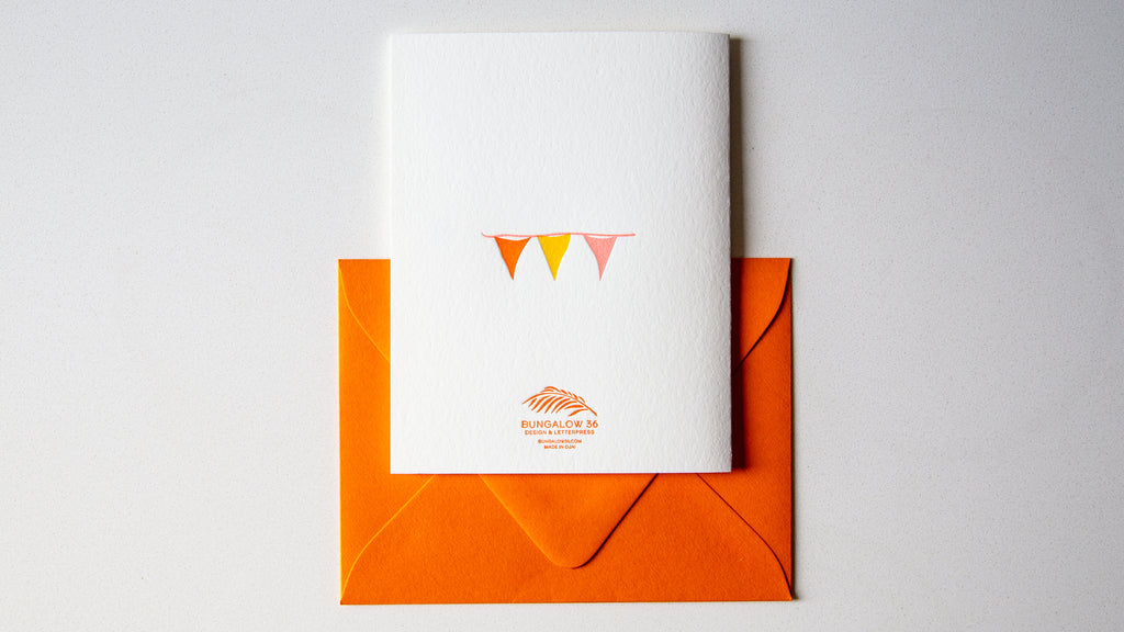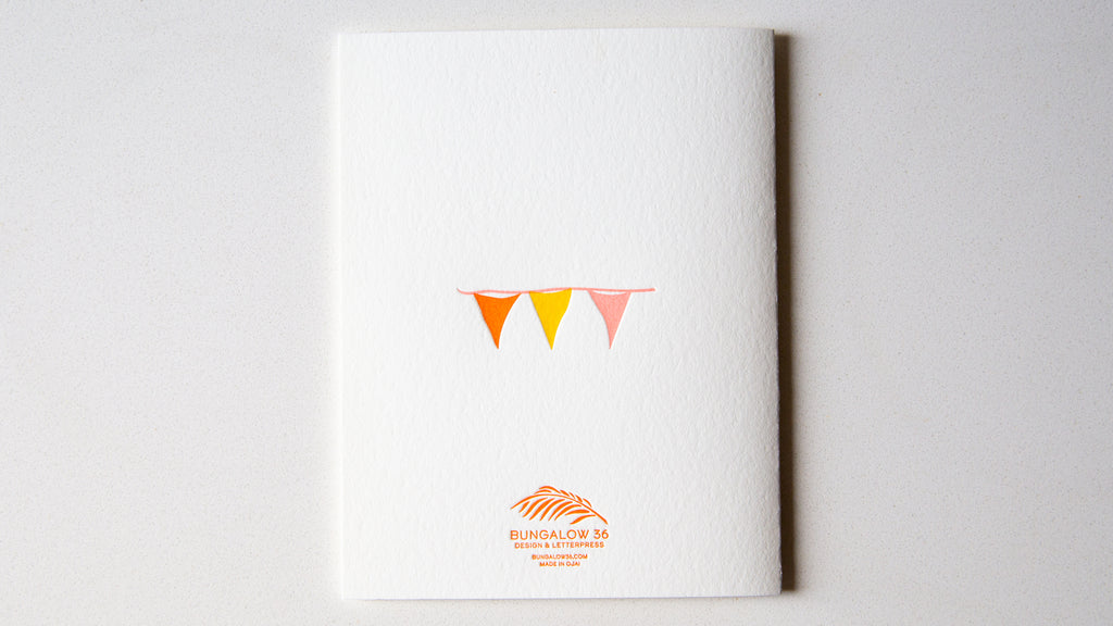 This card is hand illustrated and letterpress printed with lots of love on natural white 100% cotton paper. Inspired by my 8th birthday party in Santa Barbara. Blank inside + with a cheerful orange envelope. Available as a single card or a box set of 6 folded notes. A2 (5.5x4.25)