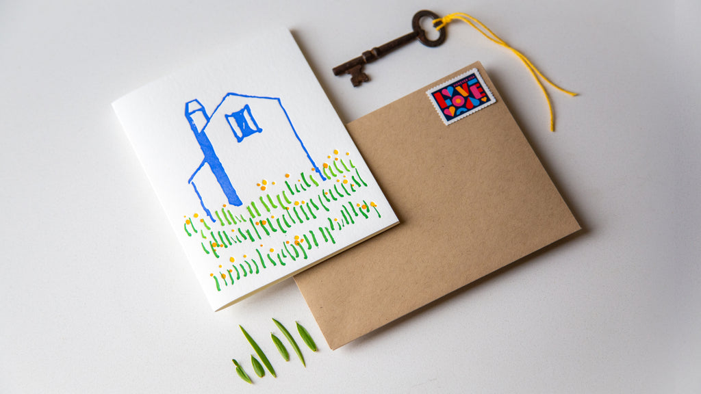 This card is hand illustrated and letterpress printed with lots of love on natural white 100% cotton paper. This inspiration came from a little cottage I fell in love while visiting Croatia. Blank inside + matching kraft envelope. Available as a single card or a box set of 6 folded notes. A2 (5.5x4.25)