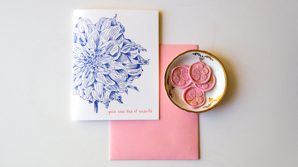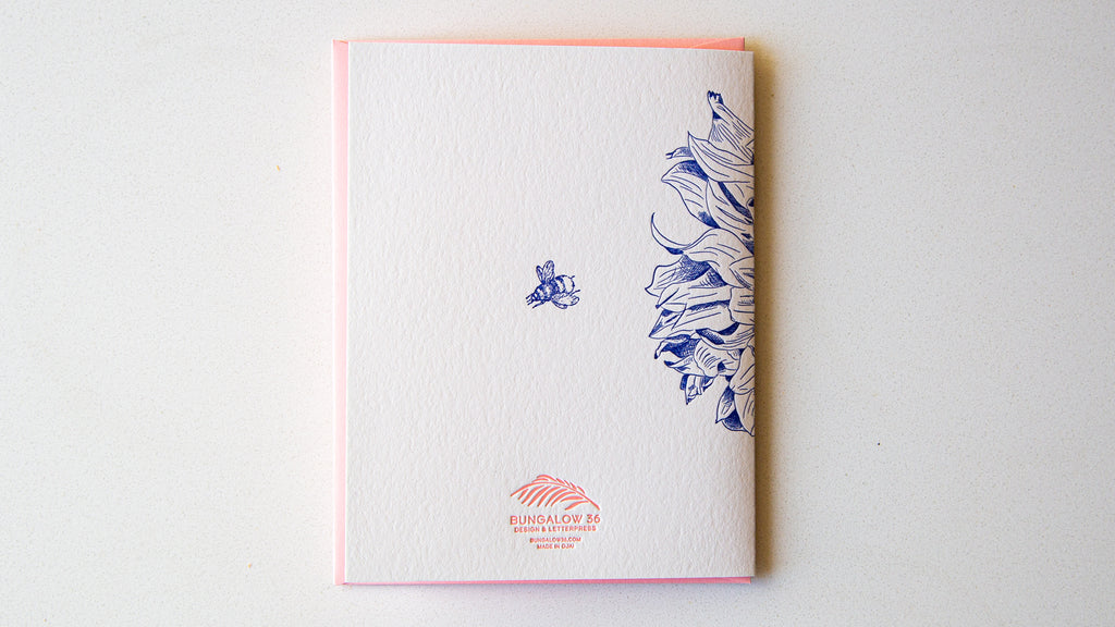 This card is hand illustrated and letterpress printed with lots of love on natural white 100% cotton paper. Inspired by the beauty that lies in each one of us . Blank inside + with a flying Bee on the back + matched pink envelope. Available as a single card or a box set of 6 folded notes. A2 (5.5x4.25) #heart #flower #bee #beauty